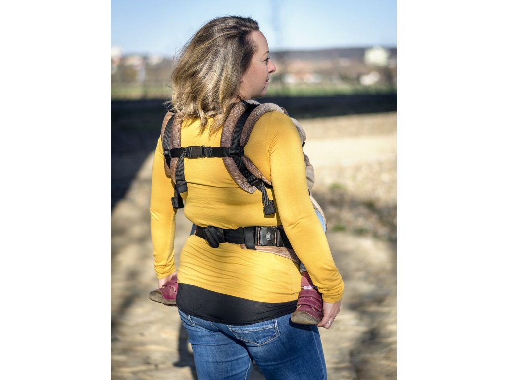 - nový, velice pohodlný bederní pás s důmyslným prošitím pro rozložení váhy velkých a těžkých dětí