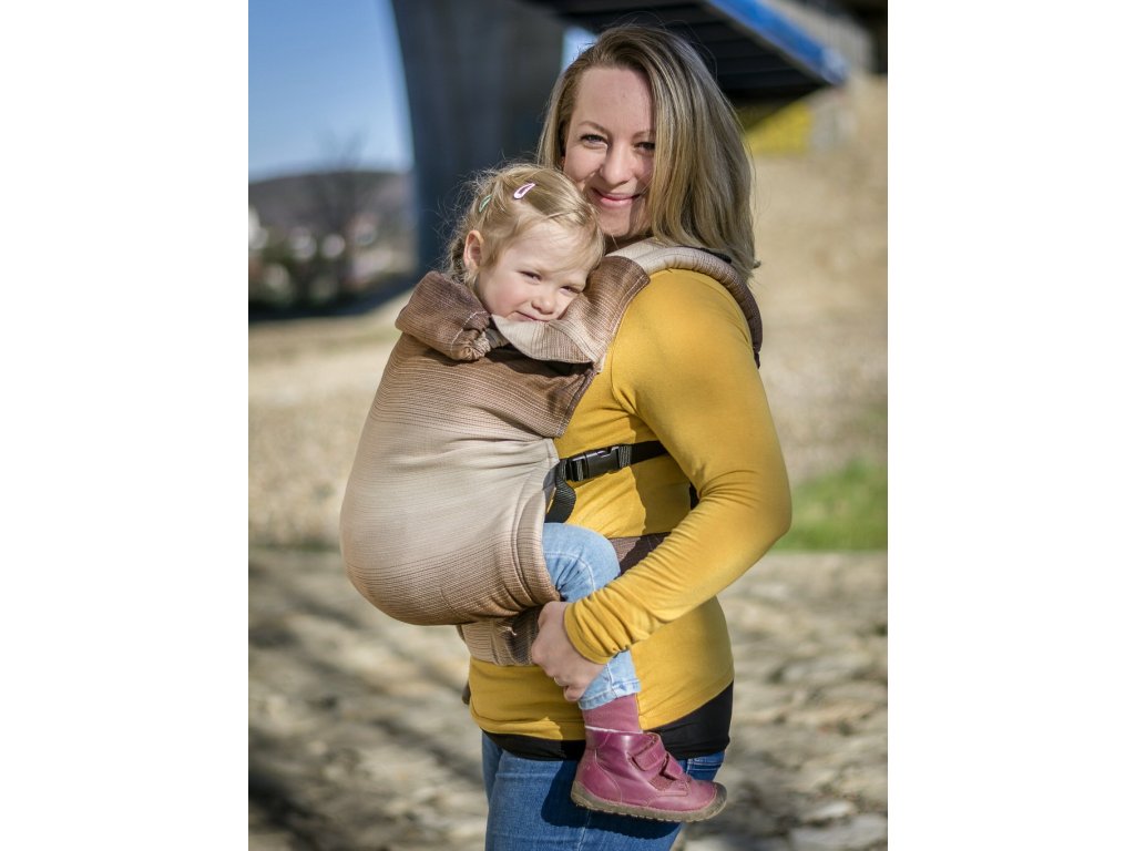 - příčná pružnost materiálu zajišťuje dokonalé obepnutí a přizpůsobení tělu dítěte, váha dítěte se dokonale rozloží