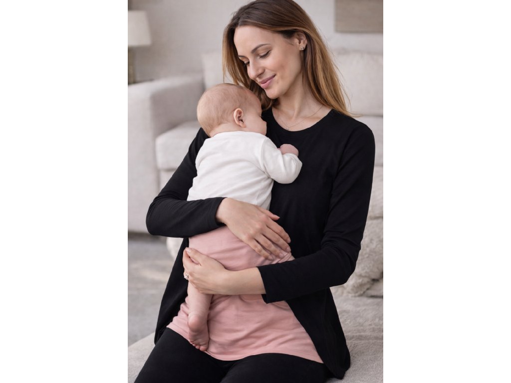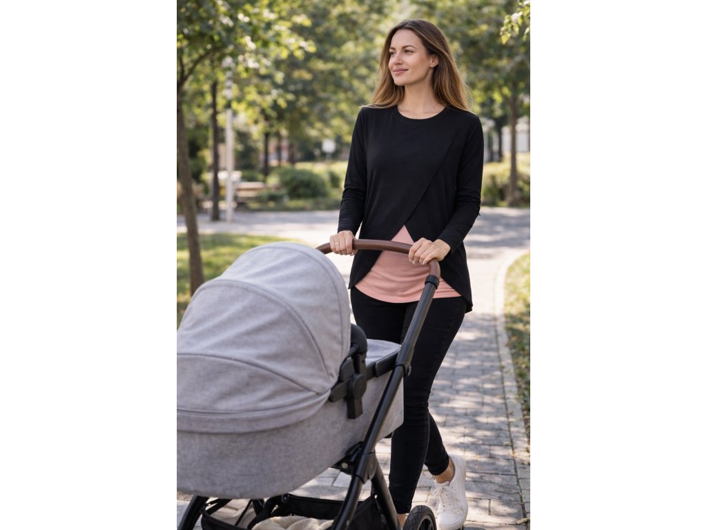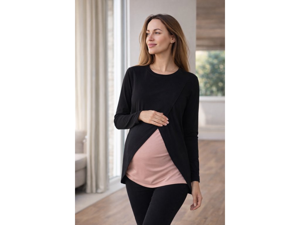 Modalové tričko / halenka s dlouhým rukávem, kulatým výstřihem a dvojitým předním dílem pro Váš nejvyšší komfort při kojení miminka - je hebké, prodyšné a nenáročné na údržbu.