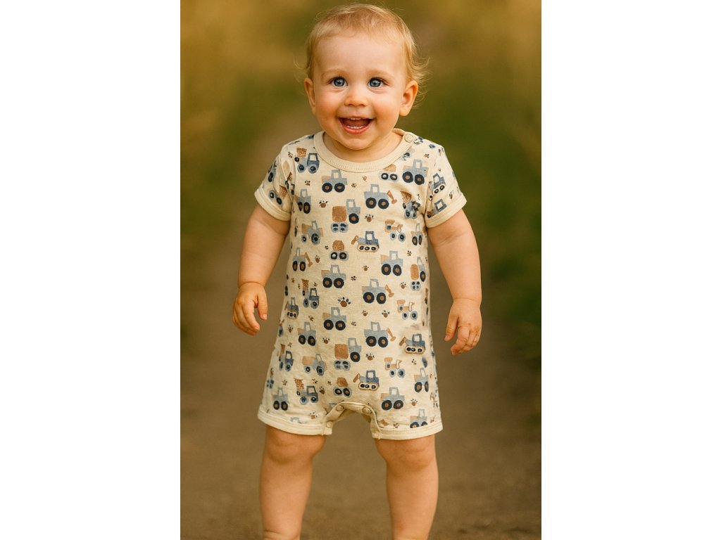 Overal s krátkým rukávem a nohavičkami je ušitý z měkkého, pružného bambusového úpletu. Praktické zapínání na druky mezi nožičkami a na rameni usnadní oblékání i přebalování. Ideální jako lehké letní pyžamko nebo pohodlný kousek na ven.
