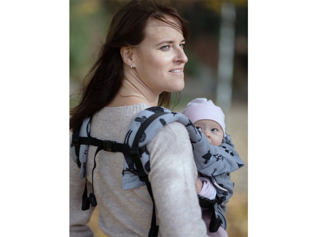 - ověřené ergonomické nošení v ortopedicky správné M poloze, příznivé pro vývoj kyčlí a páteře dítěte