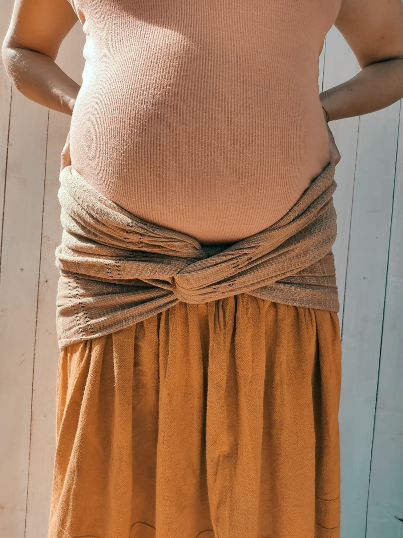 Podvazování bříška uleví od bolesti zad a krásně odlehčí pánevnímu dnu. Hmotnost se díky podvázání bříška hezky rozloží a šetří tělo. Ulevuje tlaku na močový měchýř a poskytuje oporu pro přetížené děložní vazy. Také udržuje pánev a dělohu pěkně v teple. V neposlední řadě přináší nepopsatelný pocit bezpečí, který pocítíte, až když na sobě šátek máte.