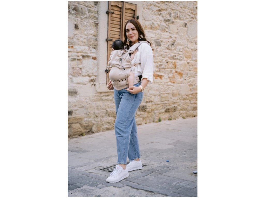 Je možné nastavit výšku zádové opěrky pomocí pásků po stranách. Rovněž je možné upravit šířku sedu a to pomocí speciálního systému patentků. Tímto jednoduchým způsobem můžete upravovat nosítko na míru aktuálním potřebám dítěte.