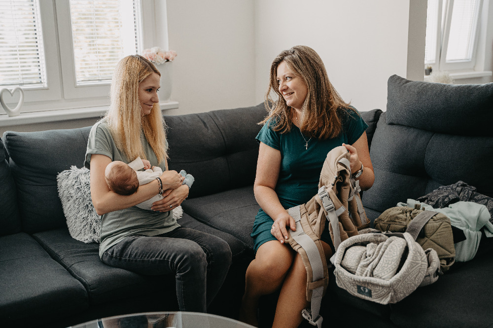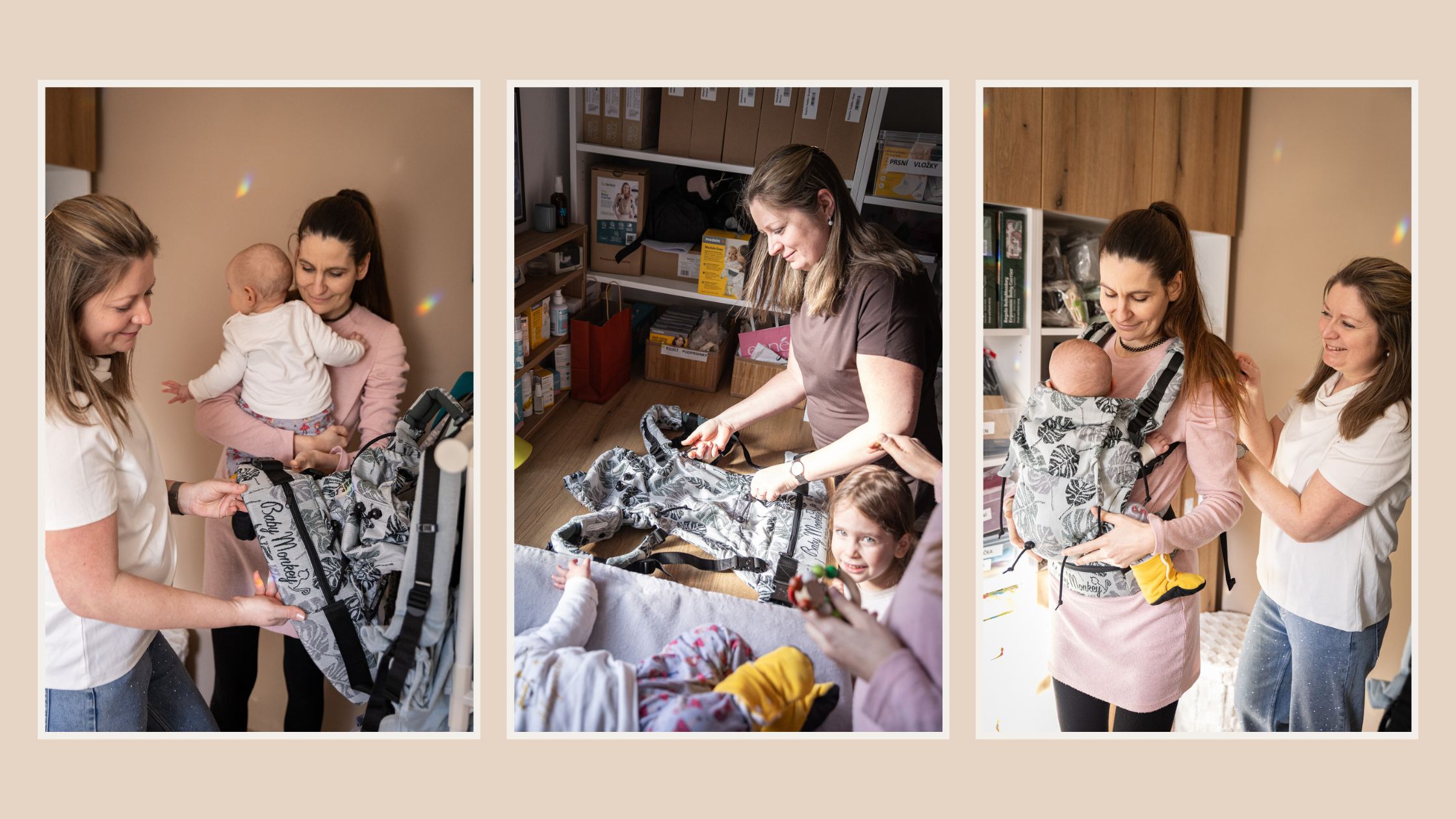 - Pomohu při výběru šátku nebo nosítka a jeho nastavením.