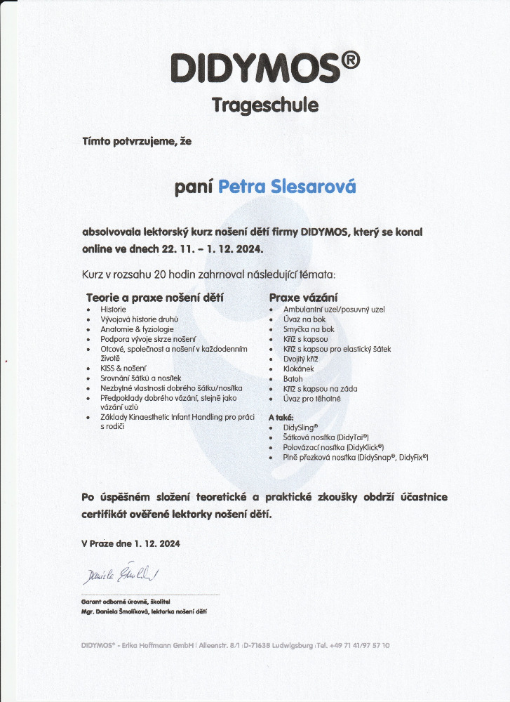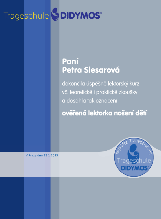 Jsem certifikovaná nosící poradkyně Didymos a učím nosit správně, protože v tom vidím základ zdraví vás i vašeho miminka. ❤