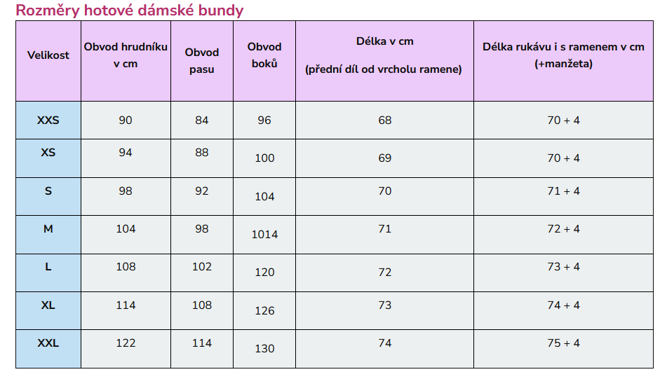 - délka bundy má stahování na brzdičku