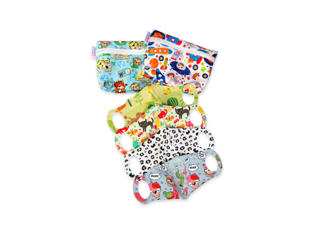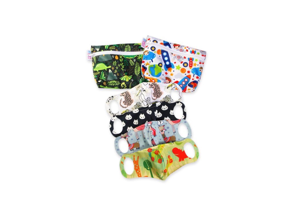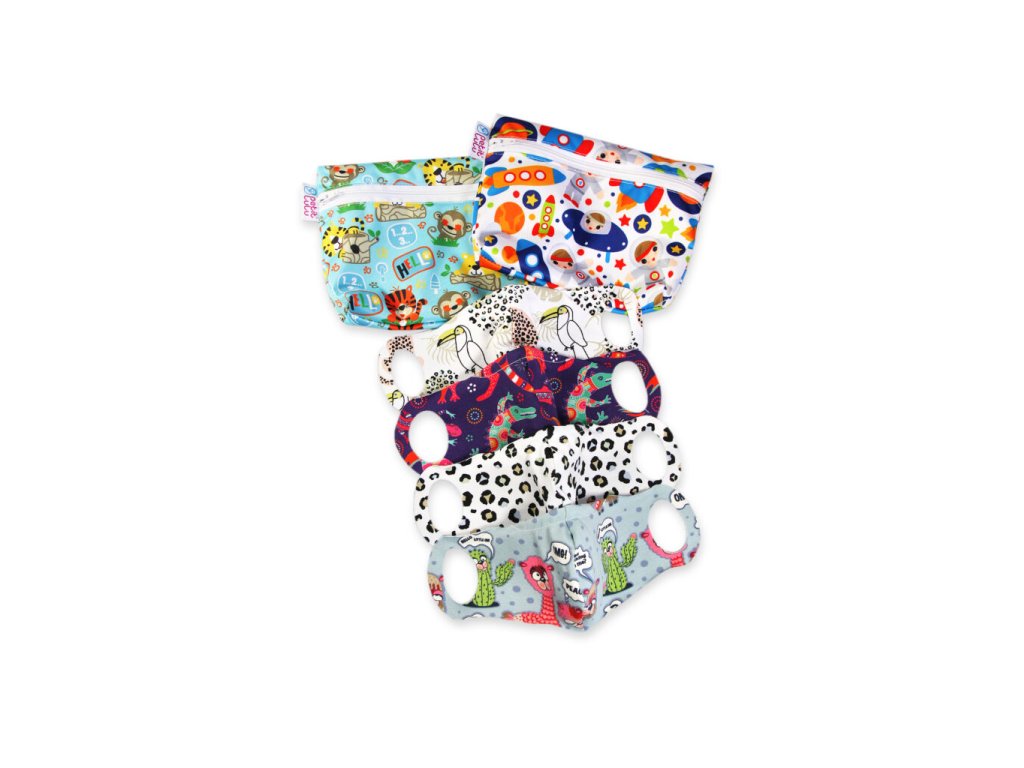 Praktická dětská sada pro školáky 4 roušky XXS + 2 taštičky Pro školáky (a nejen pro ně) jsme připravili praktickou výhodnou sadu do školy, případně do školky. Najdete v ní 4 unikátní roušky Petit Lulu a 2 taštičky na ně, jednu na čisté a druhou na použité. Komfortní roušky - perfektně sedí na obličeji, díky bavlněnému pružnému materiálu s podílem elastanu - nejsou potřeba žádné gumičky, materiál je střižený na uši - tvarovací drátek na nos roušku perfektně upevní a zabraňuje mlžení brýlí - maximálně prodyšná, se zachováním plné funkčnosti - ideální na procházky do přírody i na sportovní aktivity - hravý design - možno vložit filtr - balení po 4 kusech - 95% bavlna, 5% elastan Maximální spolehlivost dokládá vynikající hodnocení našich roušek neziskovou organizací dTest, zveřejněné v časopise dTest 12/20. Vysoce hodnocena byla především účinnost filtrace částic. Roušky přímo od českého výrobce! Taštičky - nepromokavý materiál - 18 x 14 cm - zapínání na odolný zip - balení po 2 kusech - každá taštička jiný vzor, dítě snadno rozliší, která taštička je na použité, a která na čisté roušky - 100% polyester (laminovaný polyuretanem)Doplňkové parametry