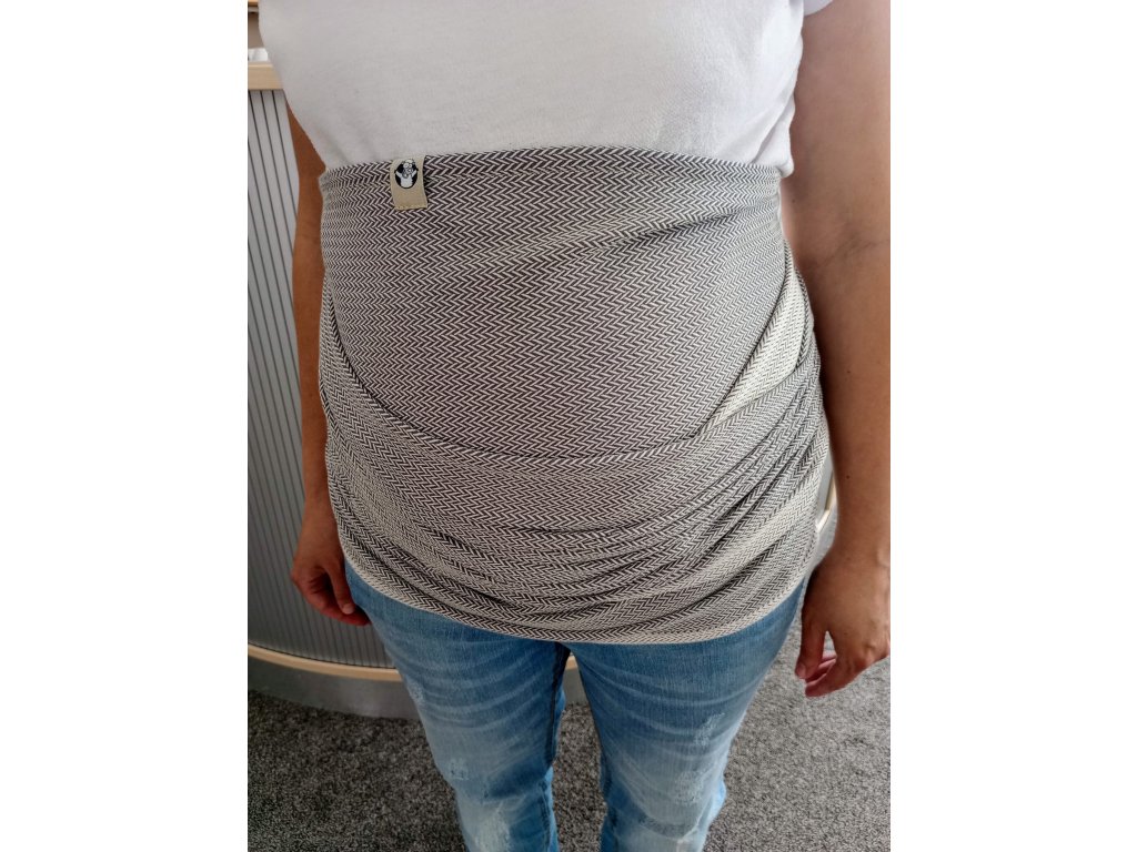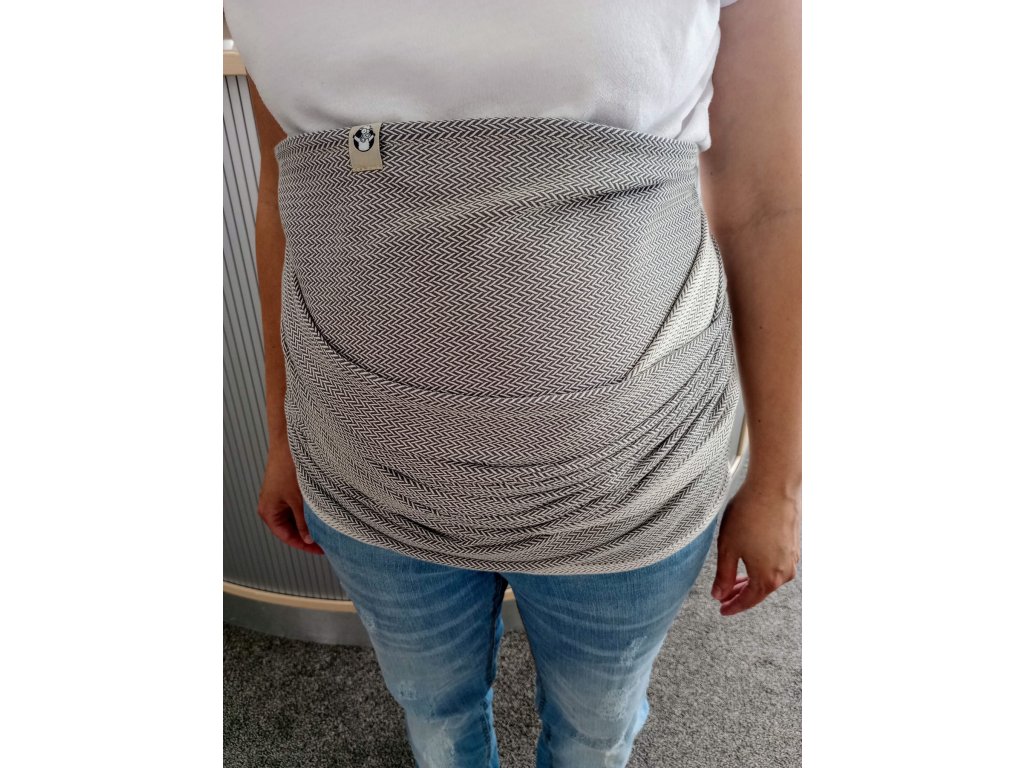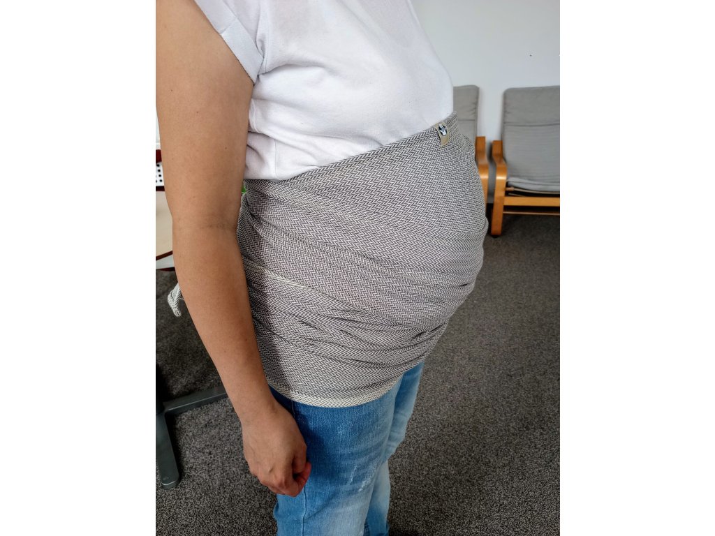 Tato délka je vhodná především na podvazování bříška po porodu, protože hezky podrží bříško i na dvě obmotání. Po porodu budete mít na sobě látky více, ale zase je velmi měkký a přijemný na dotek.