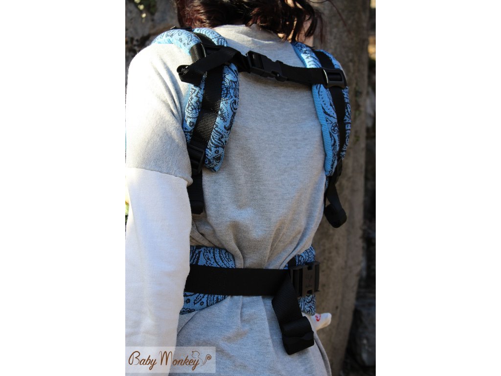 Před praním zapněte přezky. Nedoporučujeme prát spolu s věcmi které mají na sobě přezky, suché zipy, nebo ostré předměty, aby jste předešli poškození nosítka mechanicky.