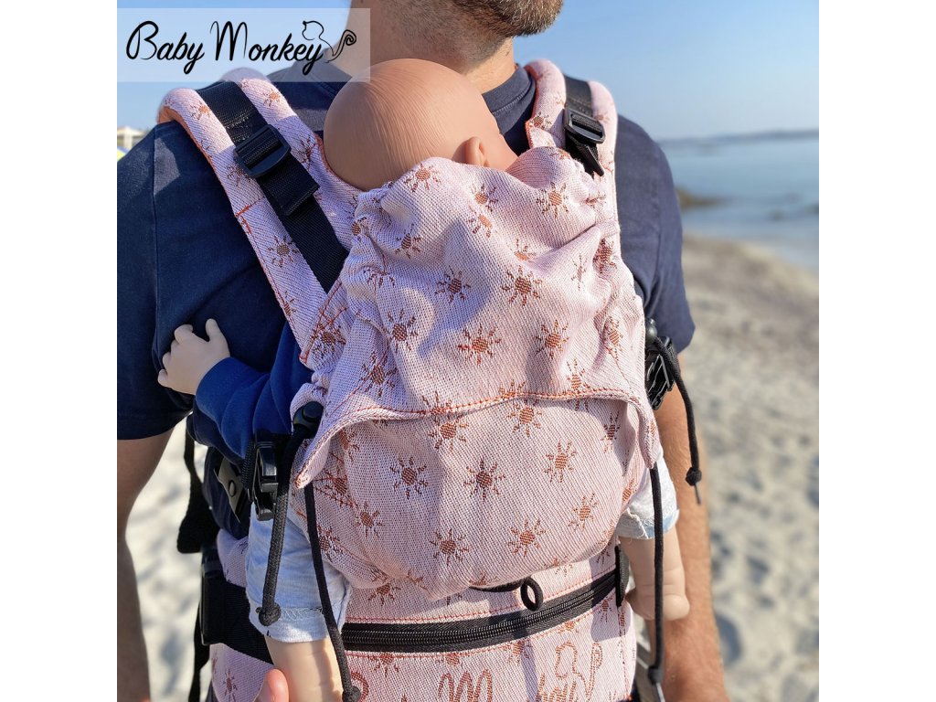 Před praním zapněte přezky. Nedoporučujeme prát spolu s věcmi které mají na sobě přezky, suché zipy, nebo ostré předměty, aby jste předešli poškození nosítka mechanicky.