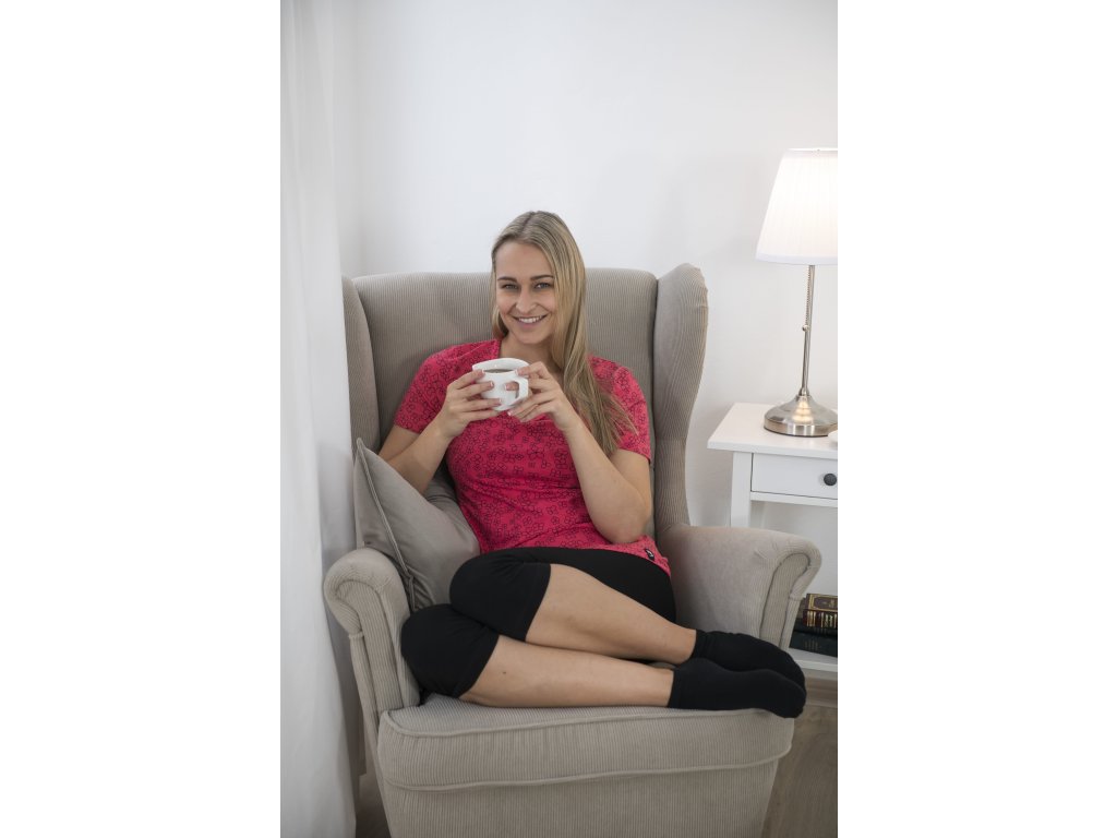 Legíny 3/4 dámské BARIDI tenké Outlast® jsou ušité z bavlněného úpletu s příměsí termoregulačního materiálu Outlast®. Tento materiál je díky svému složení a schopnostem velmi příjemný při nošení. Funkčnost materiálu znamená, že při nadměrném zahřátí těla dokáže Outlast® nadbytečné teplo odvést a uložit, a v okamžiku snížení teploty jej opět použije a zahřeje. Je tak má zajištěný teplotní komfort po celou dobu nošení. Materiál je díky svému složení velmi měkký a jemný, je tedy vhodný a doporučován i pro osoby s problematickou pokožkou. Nevyvolává alergické reakce a je odolný vůči plísním a bakteriím, snižuje riziko vzniku potniček. Navíc poskytuje UV ochranný faktor 50+. Tříčtvrteční legíny jsou svým střihem perfektní pro jakoukoli pohybovou aktivitu nebo příležitost. Jsou velmi jemné, pružné a příjemné na dotek. V pase jsou opatřeny širším dílem, který je z hlediska komfortu tou pravou volbou. Nejen, že tříčtvrteční legíny jsou díky tomu ještě více pohodlné, ale dokonce ani nelezou, skvěle se nosí a padnou každé postavě. Tento širší lem kolem pasu zamezí odstávání legín, podpoří pohodlné nošení a decentně stáhne bříško. Zadní část 3/4 legín je doplněna o designový potisk loga BARIDI wear®. Vyzkoušejte tyto Legíny 3/4 dámské BARIDI tenké Outlast®, které jdou skvěle kombinovat s naší další nabídkou. Doporučujeme dodržovat prací symboly uvedené na etiketě. Zobrazení barev se může mírně lišit od skutečnosti. Český výrobek, jehož koupí podpoříte zaměstnávání našich zdravotně znevýhodněných kolegů.══════════════════════════════