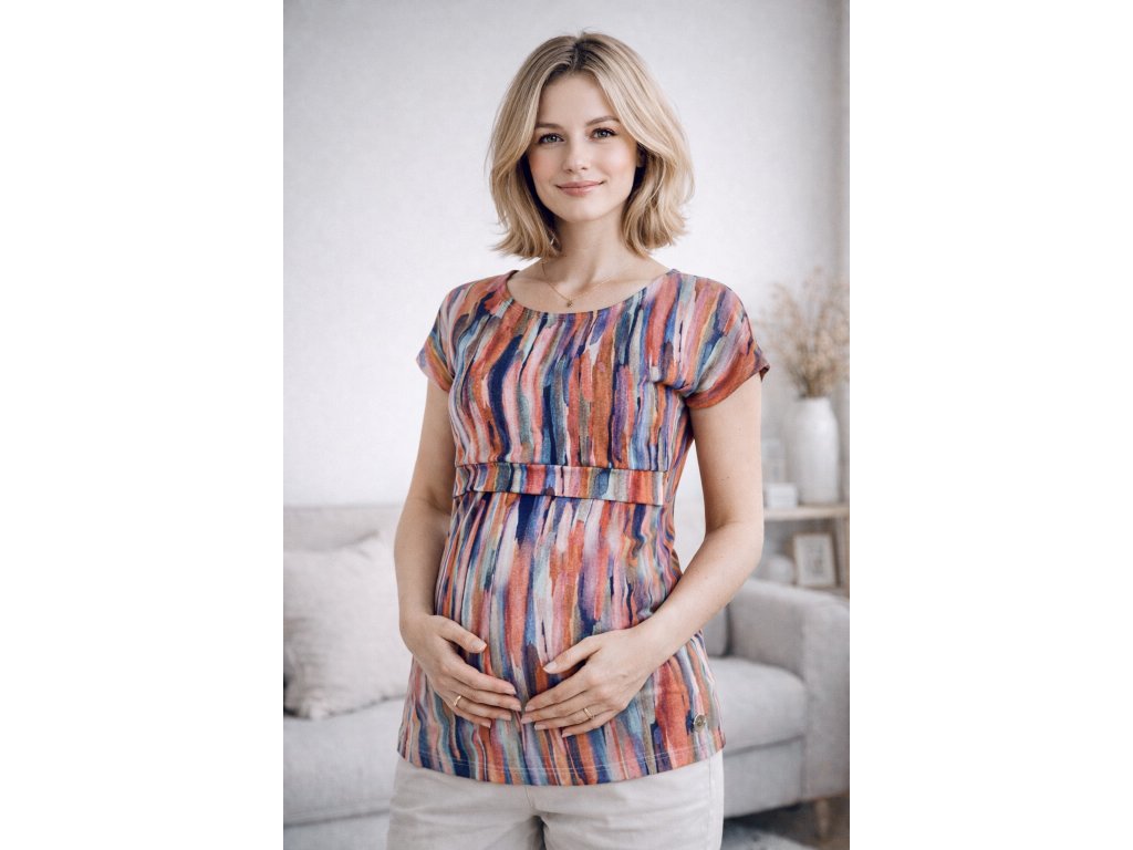 BIO bavlněné tričko s elegantním kimono rukávem, lodičkovým výstřihem a dvojitým předním dílem je navrženo pro Váš nejvyšší komfort při kojení miminka – je velmi příjemné na nošení, elegantní, prodyšné a nenáročné na údržbu. Budete se v něm cítit opravdu výjimečně.
