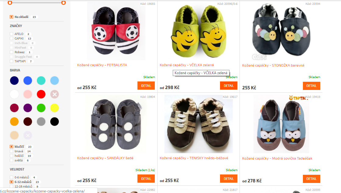 Pokud tedy například potřebujete capáčky pro kluka ve velikosti pro 6-12 měsíců a spěcháte na ně, chcete tedy vybírat jen z těch, které jsou skladem, zaškrtnete kolonku "Na skladě" a vyberete další požadavky (velikost, barvu) Zobrazí se Vám vyfiltrované vzory, které vyhovují Vašim požadavkům a z těch můžete vybrat ty, které vložíte do košíku a objednáte.